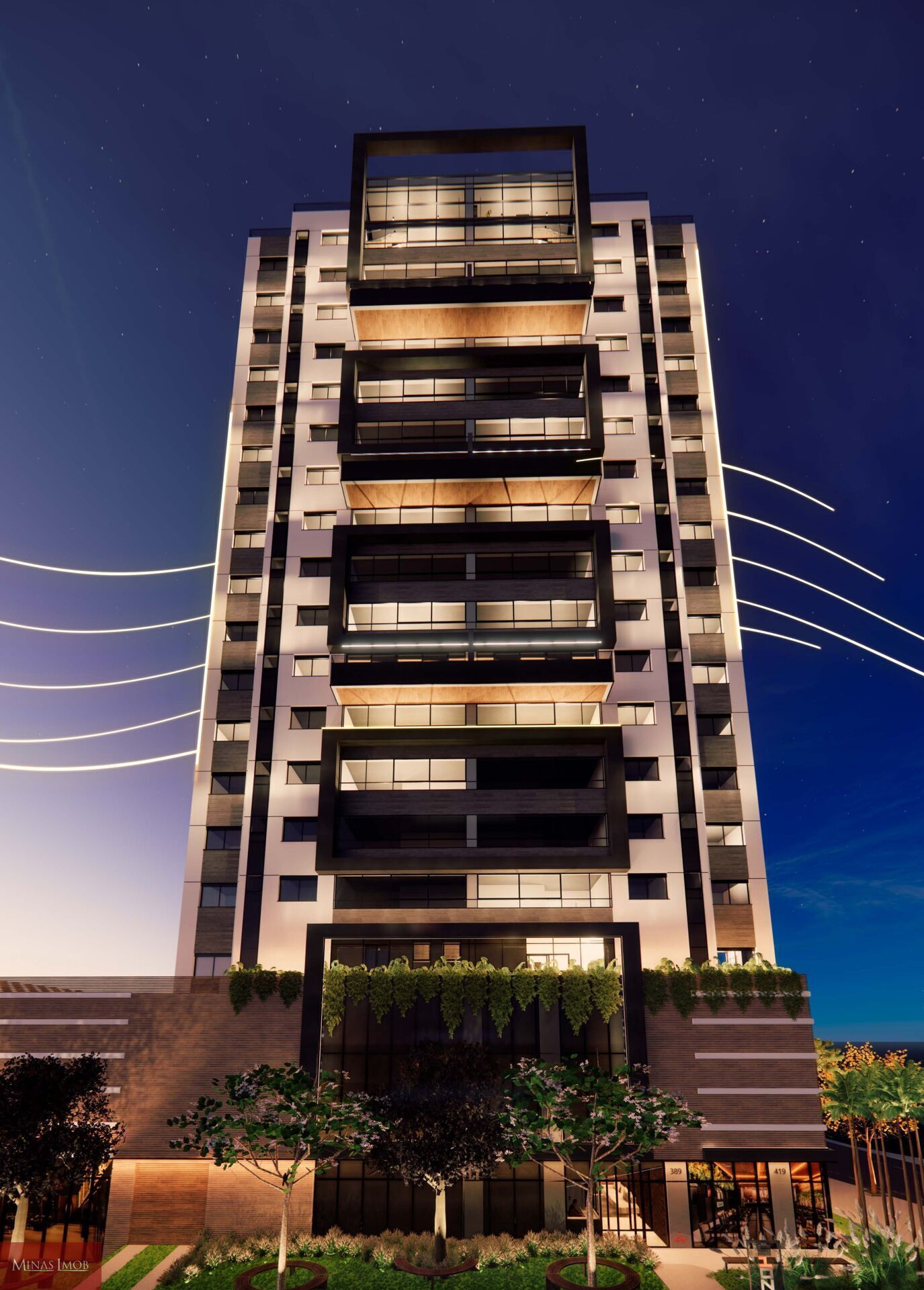 • Fachada revestida em porcelanato aerado (Traz nobreza e conforto térmico)